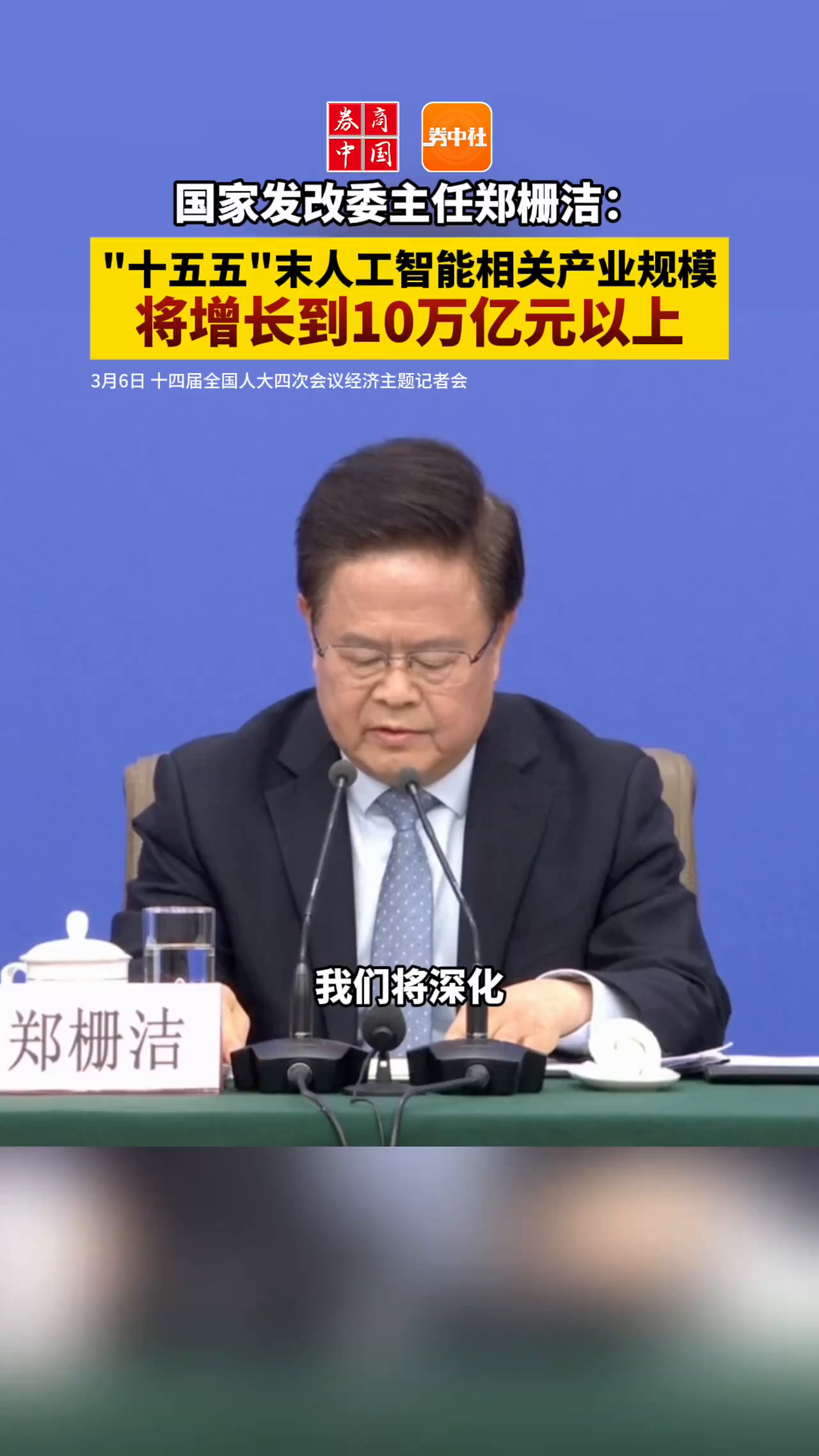 国家发展改革委主任:“十五五”末人工智能相关产业规模将增长到10万亿元以上