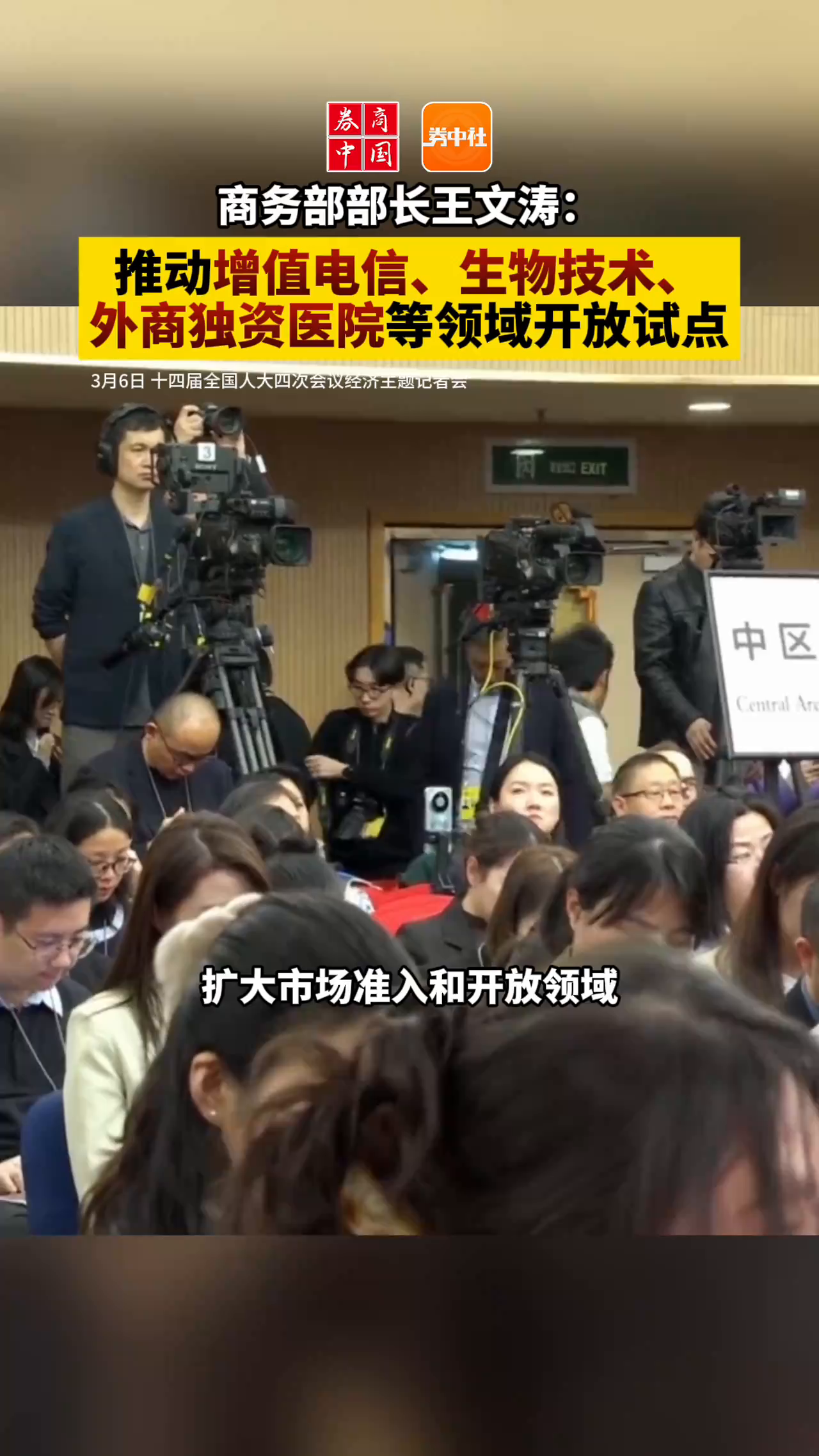 商务部部长王文涛:推动增值电信、生物技术、外商独资医院等领域开放试点